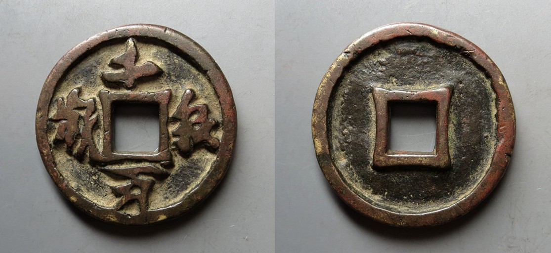 作为与北宋王朝对峙的少数民族政权,游牧民族的桀骜不驯也体现到了铸币方面,“千秋万岁”钱文漫漶不清,非隶,非真,非草,书法古拙粗犷,富于变化,“万”字采用简化体,“岁”字省笔多处,字形长,最后两笔尤长,当属契丹人学写汉书法,体现了辽文化与汉文化的融合,朴茂拙趣。在辽时“千秋万岁”的涵意是什么?辽白川州故城(今辽宁北票与朝阳之间)有一石幢,首云:“奉为神赞天辅皇帝,齐天彰德皇后万岁,亲王公主千秋”,指的是辽圣宗耶律隆绪,又圣宗仁德皇后肖氏,统和十九年(公元1001年),册封为齐天皇后,夫妻二人是“万岁”。“千秋”,指的是此时的亲王及公主,可见“万岁”、“千秋”是有等级之分的,能配得上万岁、千秋的仅此数人而已。 “千秋万岁”钱,初见于南宋洪遵《泉志》,洪遵曾转引了李孝美的话,:“‘千秋万岁’钱今甚易得,盖常岁虏使入贡人,多贸易得耳”。