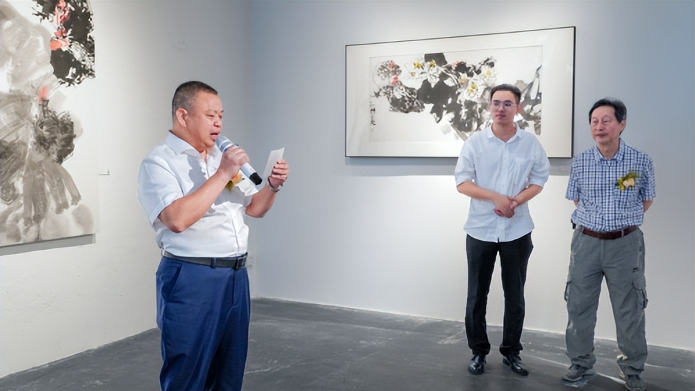 本次展览联合主办方、千和文化战略合作伙伴——广东国际拍卖公司总经理何腾栏先生随后发表了致辞。他对千和文化在本次展览中呈现的专业的策划能力表示赞扬,并非常荣幸能够与各界人士共同见证这次展览的开幕,向公众呈现谢天赐先生的大写意花鸟画艺术。他说,本次展览是一场视觉和心灵的盛宴,是一场文化和艺术的交流,也是一场市场和收藏的机遇。他希望,通过这次展览,能够让更多的人了解和欣赏谢天赐先生的艺术魅力和风貌,也希望能够为推动中国艺术品市场的健康发展起到积极的作用。
