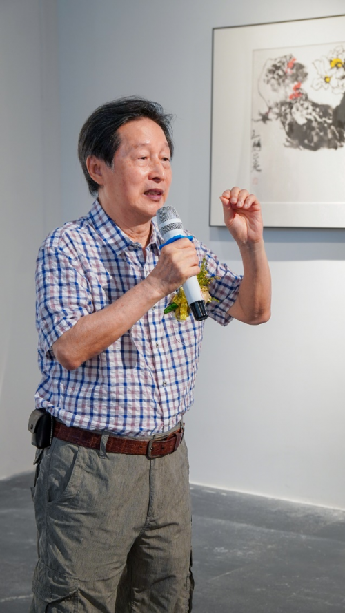 开幕式上,千和文化负责人蒲亭利女士发表欢迎致辞,她对谢天赐先生为本次展览提供的支持表示感谢,并肯定和赞扬了谢天赐先生在大写意花鸟画领域上的卓绝成就。蒲亭利女士表示,谢天赐先生是当代中国最具影响力的大写意花鸟画家之一,他以宇宙观为指导,以心象为依据,以笔墨为载体,创造了独具特色的谢氏大写意花鸟画风格。他的作品不仅展现了中国传统文化的精髓,也体现了当代艺术的创新和探索。他的艺术成就和贡献受到了国内外的高度评价和认可。为此中国国家画院为谢天赐先生举办了专题展览和“传统到当代的笔墨转换”研讨会,肯定了他的大写意花鸟画艺术对花鸟画领域的影响和贡献。