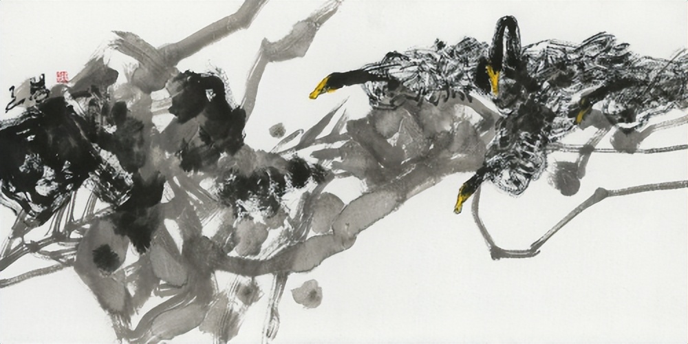 谢天赐随性挥洒的第一笔也有混沌开天的“太极”之象:无形以起,一画生气;用之不用,欲歙固张;抱朴守拙,无而生有;心随笔运,形从道出。其水韵墨魂里分明蕴藏一种至简至高的画道。把简单东西复杂化,靠的是笔墨;把复杂的东西简单化,需要的是理性。