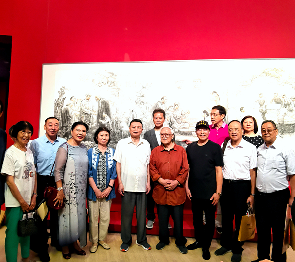 策展人王茜女士透露,“脊梁——赵志田中国画作品展”,旨在呈现画家在艺术创造中勇于担当、敢为人先的守正创新和对民族精神的坚守,中国美术馆中心展厅展览体现着中国画家群体链接艺术史文脉与独标一格的学术成果汇演。本次画展的意义还在于大型主题创作中的史诗性文献,画家代表作《大庆工人无冬天》、《烽火太行》、《百听不厌是乡音》等在艺术史脉络中展露的革命理想高于天的时代精神与革命乐观主义精神依然在不断迸发力量,为了这种精神的传递,画展期间组委会特别邀请周恩来总理侄子周秉和先生,开国大将张云逸将军之孙张晓健先生,开国上将杨至诚将军之子杨珠江先生,开国上将李天佑将军之子李亚滨先生及夫人饶立群女士,开国上将邓华将军之女邓英女士,开国将军边疆之子边小兵先生等嘉宾来到开幕式。多样性的展览、交流、研讨、互动创造性地达到了一种经典艺术走进社会大众生活的时代洪流与能量。口碑相传的艺术经典一定是持久的,散发着人性的温暖和精神力量的。这也是“脊梁——赵志田中国画作品展”带给全国人民不寻常艺术感受的精神特质——不忘初心、砥砺奋进。