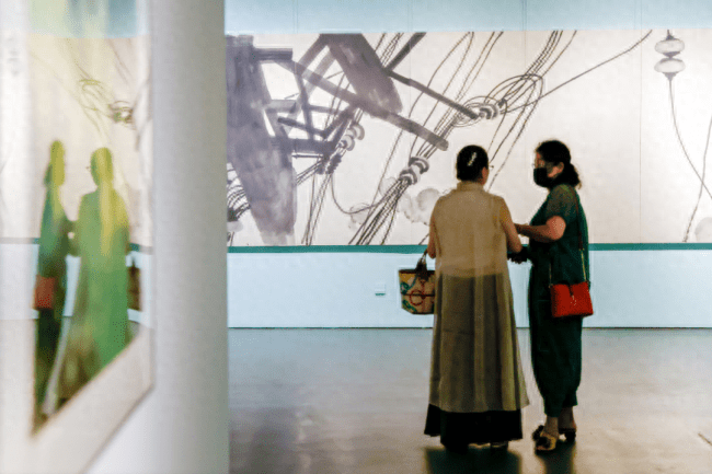 除了展示陈湘波的工笔花鸟、写意水墨佳作展出的《寂》《静》《玄》等系列作品,是他对当今社会和自身生活境遇的多视角的表述。艺术家特别带来2022年创作的数字水墨交互艺术装置作品《观·荷》,在艺术盒子中,观众可以感受到中国画“动起来”的美,同样在银色涂层的装点下,映射延伸的美传达出美的无限。陈湘波表示,《观·荷》将中国传统工笔画与现代数字技术以及空间美学相结合,通过新媒体交互技术与观众产生互动,让观众沉浸其中,体验花开花合,感悟一花一世界、一念一尘缘的境界。