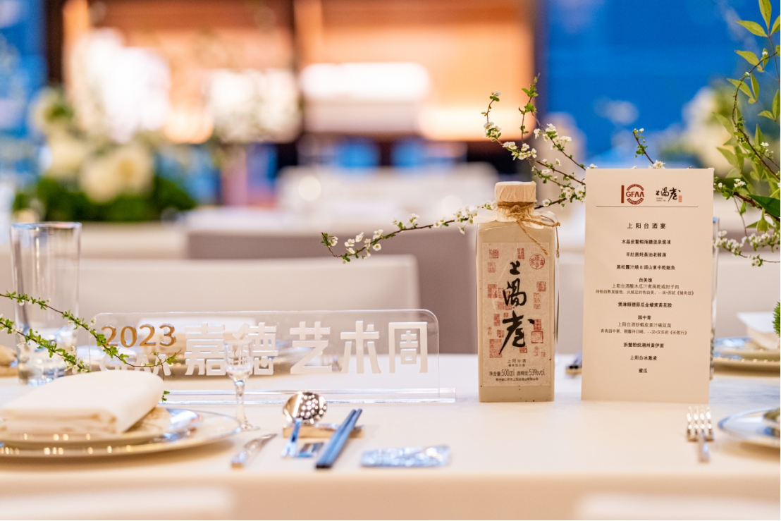 在本次嘉德艺术周的晚宴之上,国内外优秀艺术家、艺术收藏机构领袖等贵宾齐聚,上陽臺作为嘉德艺术周晚宴品鉴用酒,为艺术家、收藏家、文化学者等搭建了一方文化交流场所。在品赏交流之间,文人雅士畅抒己见,多元文化在这场雅集中碰撞融合,迸发出新时代的生命力。上陽臺通过对传统文化的传承和表达,推动不同领域文化艺术的互鉴互赏,通过美酒的品鉴,凝聚更多文人艺术家的力量,将文化之光燃烧得更加璀璨。