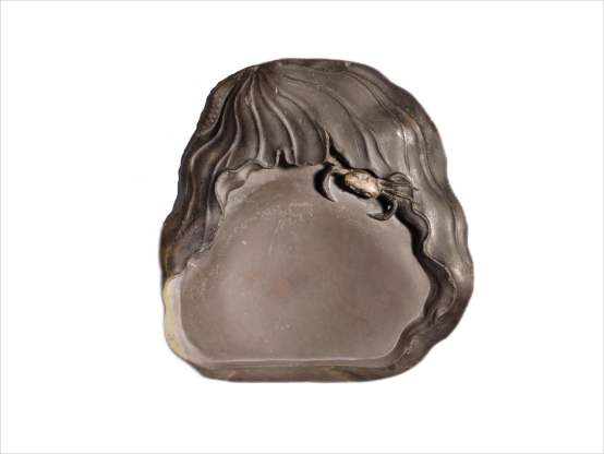 所以,从砚台诞生和发展变化的过程来看,砚台来源于生活,与生活息息相关,是文人和匠工受生活的启发突发感想而从生活中提炼出来的,它虽源于生活,但在它诞生和发展的过程中,集中和升华了劳动人民的智慧,使砚台这种具体载体又高于生活,完美于生活。具备了生活和精神的灵性,你像汉代的三足带盖石砚,你像唐代龟砚,凤池砚,你像宋明时期的蝉砚、二甲传鲈砚等,这些虽然都取之于生活,但其造型又比生活中的器物、动物更加完美和生动,有的甚至更为夸张和张扬,使其气场和造型更生动有力,而且还暗含了人生做人处事的道理。