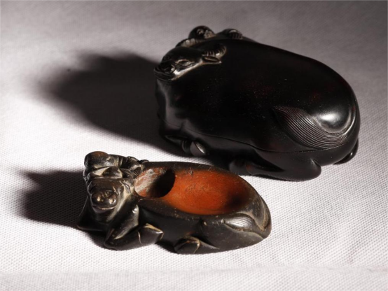 秦汉砚台还有不少雕刻龙、凤、虎、熊等动物形象的砚台,这些砚台它彰显了中华民族汉族和少数民族的图腾崇拜,大家有借这些大型动物的力量来达到自身理想和愿望的目的。