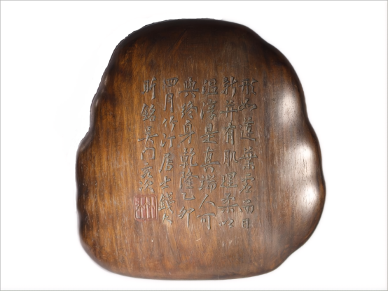 “端溪之穴,毓此美质。既坚而贞,亦润而泽。涩不拒笔,滑而留墨。稀世之珍那可得?故人赠我情何极!素心交,视此石,子孙保之永无失”。