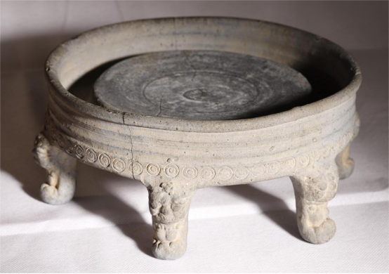秦汉时期带圆纽的圆形研磨器