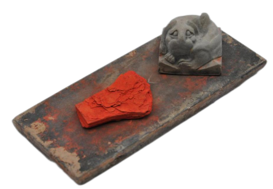 这个发展过程大约持续发展了二、三千年的时间,为什么这种进化发展的过程这么缓慢?因为这一时期墨一直没有诞生,春秋战国前的两三千年中,画岩画,绘制彩陶,巫术化妆以及在兽骨上写字一直用的是矿物和植物颜料,直到春秋战国时期,松软的墨糊、墨膏、颗粒墨才出现,到这时期,才有了专用的研磨器,比如经过加工的长方形板样砚和圆形圆饼砚,比如刻有龙凤虎熊纹饰的三足带盖石砚等。