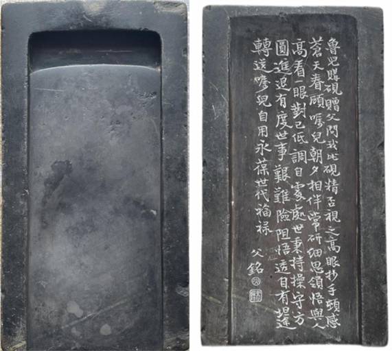 二是从篆刻、漆书在砚台上的铭文内容来看它承载了诸多的家国情怀。