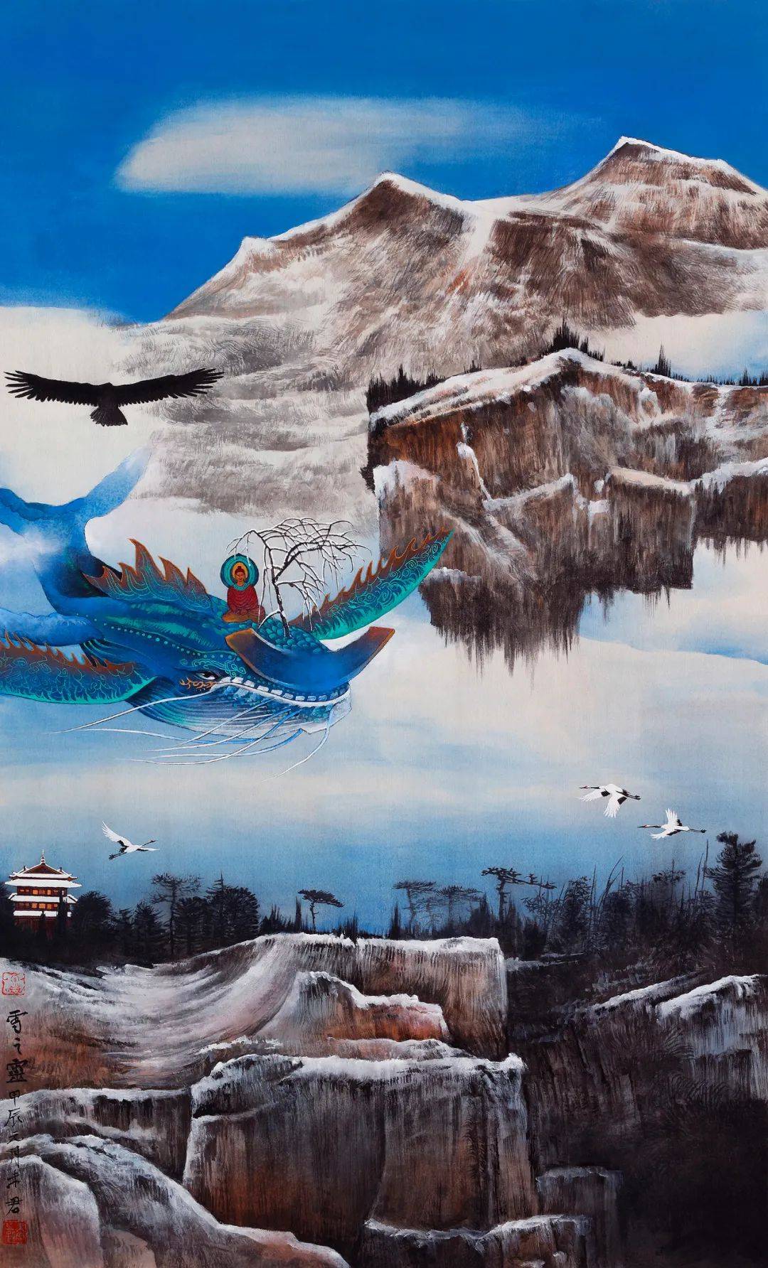 每一位艺术家的背后,都是常人难以想象的坚强与付出。在创作上,未君老师对每一笔、每一幅作品都严格要求,力争“致广大而尽精微”,细思作品深处的人文境界与情感表达,尤其注重作品细节的描绘。他的作品以饱满的线条、厚重的色彩,带领着读者随时出发,乘上飞鸟的羽翼,穿过神的天宇,栖落于高高的雪山上,带着我们进入一个奇幻的世界,如同我们想要去攀登一座又一座高峰,并由此获得人生意义的启迪。 不论什么时候,未君老师都十分认真对待自己的艺术创作,精心构思,不断突破自我,正是这种坚韧、拼搏的文化自信,与 “ 岭南一亩粮田” 的坚守品质,追求卓越、勇于挑战的精神,以及秉持品牌的理念达到完美契合。