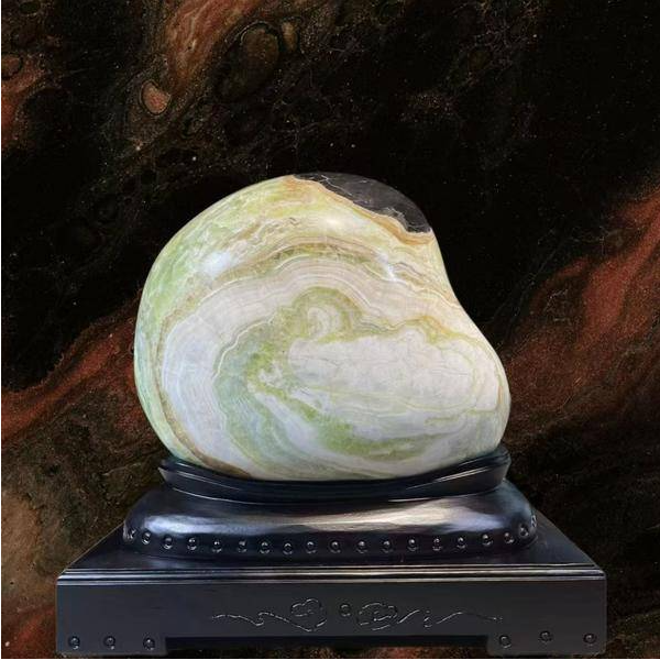 2、“神农玉”是一块带有石皮的籽料,经过随型打磨才能看到玉质。