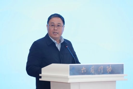 周庆富在致辞中表示,此次展览以“六籍同功”为主题,其理念源自唐代张彦远的《历代名画记》,“夫画者,成教化,助人伦,穷神变,测幽微,与六籍同功,四时并运”。这千年古训,精准道出了艺术创作所承载的深远社会价值和人文精神。今天重温这一经典论述,正是要强调,优秀的艺术作品应当与经典典籍一样,肩负起启迪思想、陶冶情操、温润心灵、引领风尚的重要职责,成为构筑中国精神、中国价值、中国力量的坚实文化根基。他还谈道,本次展览是中国艺术研究院与三山五园文化艺术中心的首次合作。三山五园地区承载着北京深厚的历史文脉,是展示首都文化建设成果的重要窗口。他希望以此次合作为起点,未来双方能在艺术创作、展览展示、公共教育等领域开展更深入的交流合作,共同为首都文化建设贡献力量。